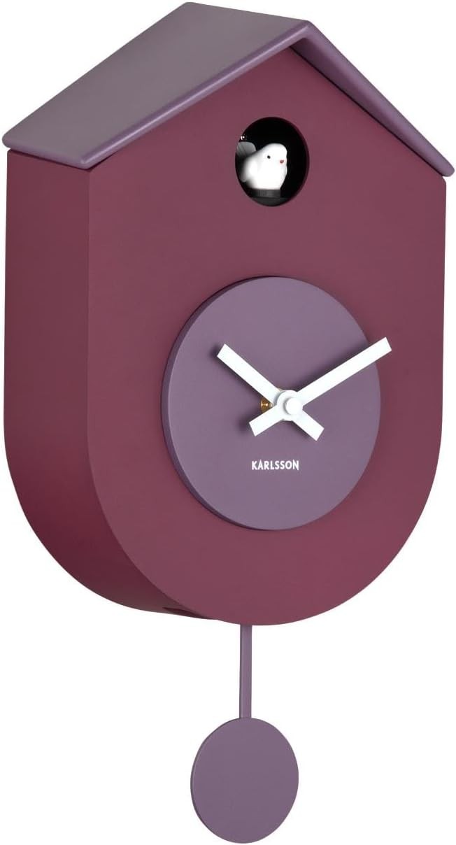 Karlsson Grato Cuckoo Wall Clock with Oscillating Pendulum Deep Mauve and Soft
