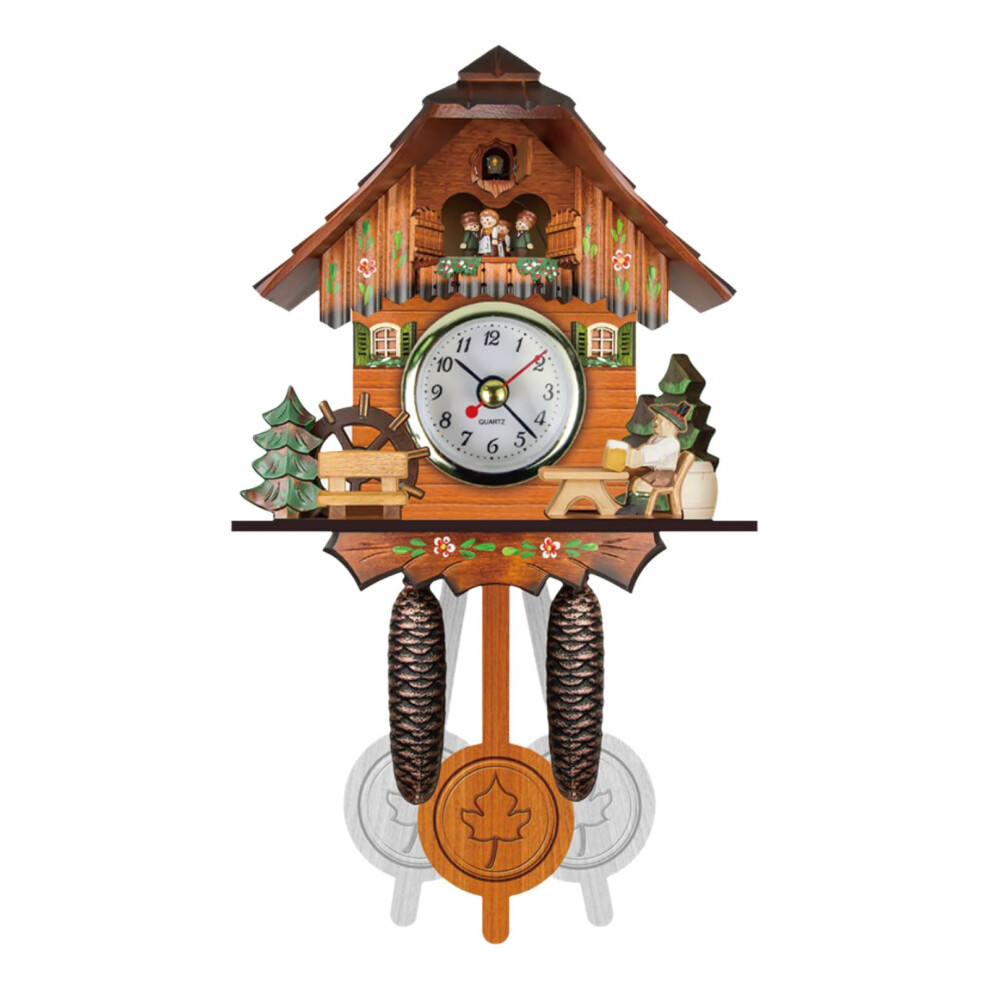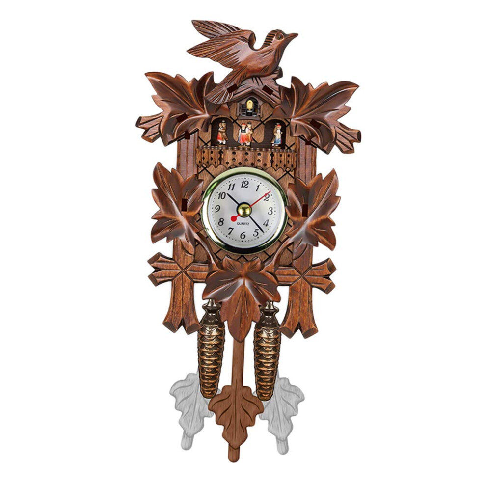 Cuckoo Wall Clock with Pendulum and Swinging Bird, Wooden Living Room Alarm Clock, Vintage Home Decor, 12-Inch