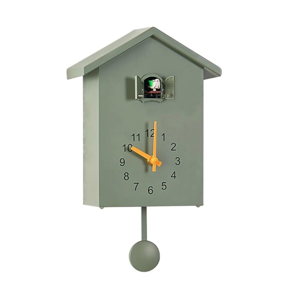 Cuckoo Clock With Pendulum And Bird Sound Alarm, Green Wall Clock For Living Room Decoration, Timed Function Home Decor