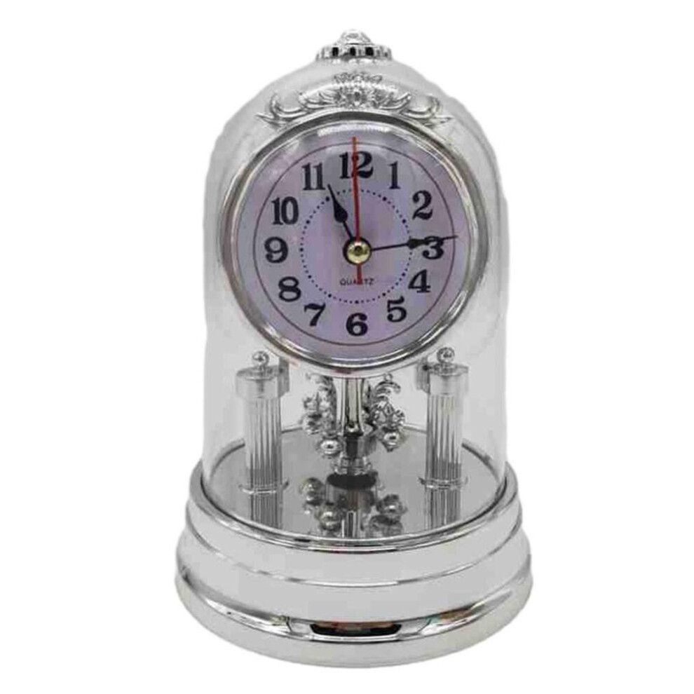 (silver) Classic Vintage Clock European Style Desk Antique Clock with Pendulum and Chime