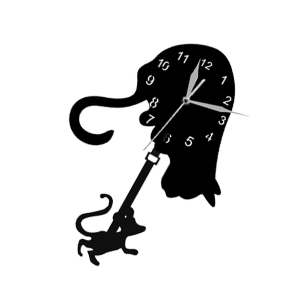 (black) Easy To Read Wall Clock With Cat Pendulum For Unique Style And