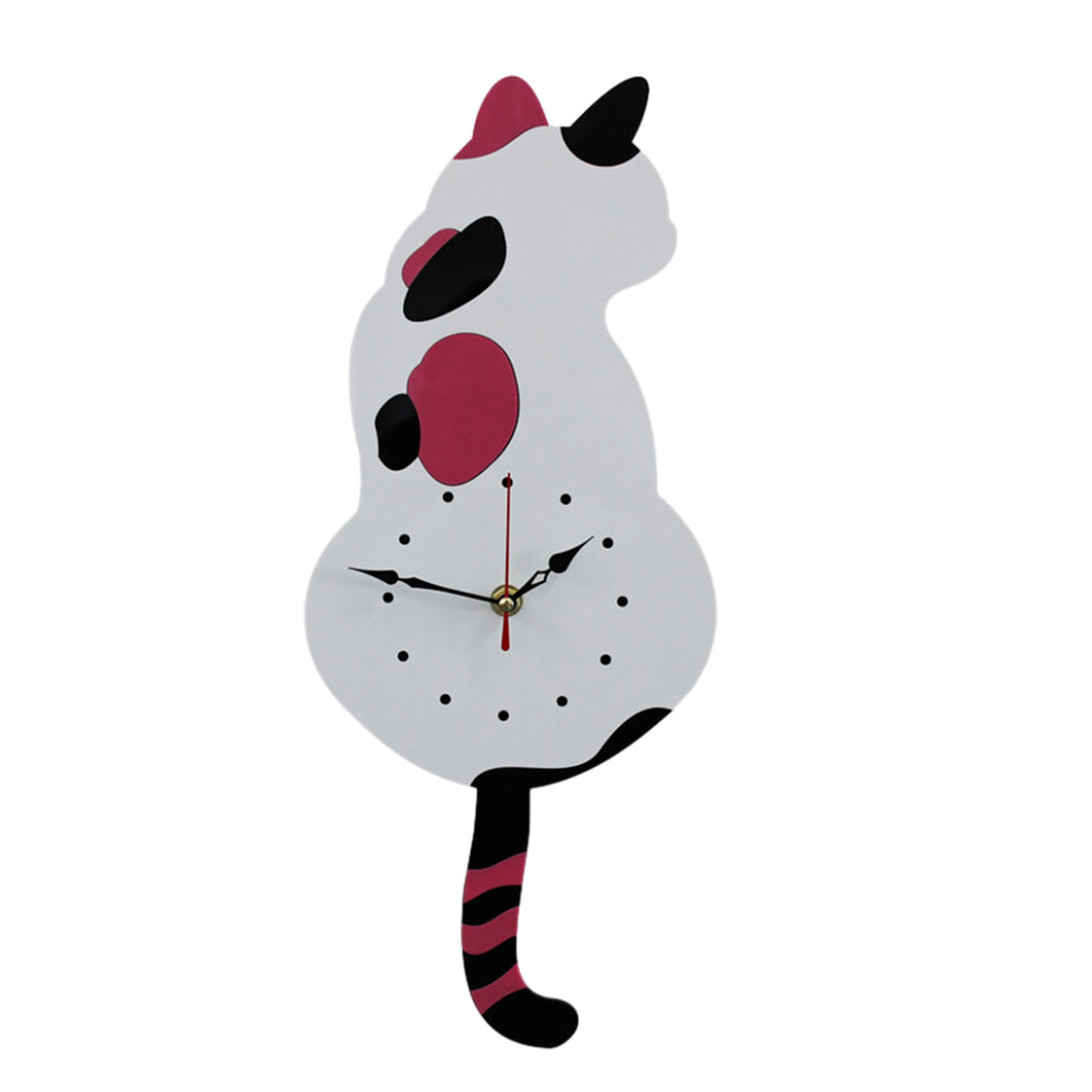 (white) Unique Style Wall Clock With Cat Pendulum For Accurate Timekeeping And