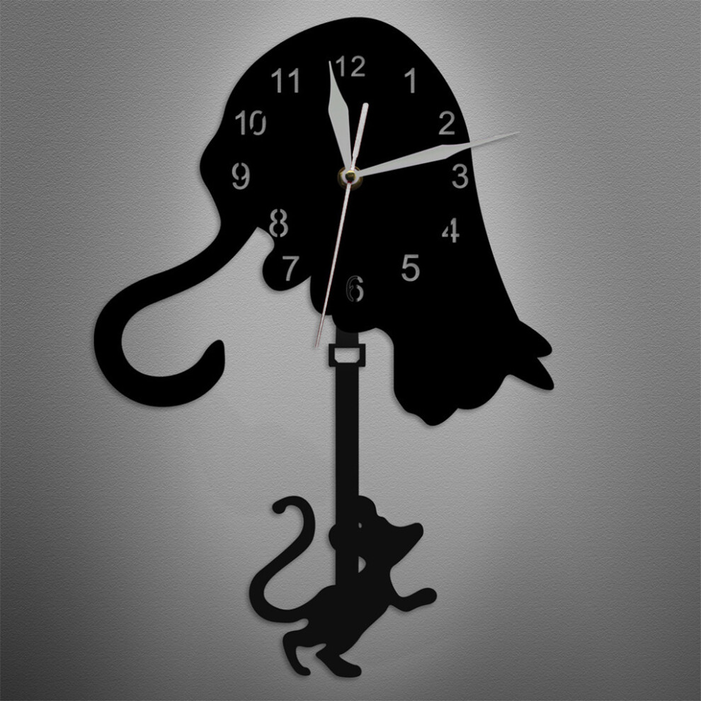 Acrylic Unique Style And Easy To Read Cat Wall Clock With Pendulum And