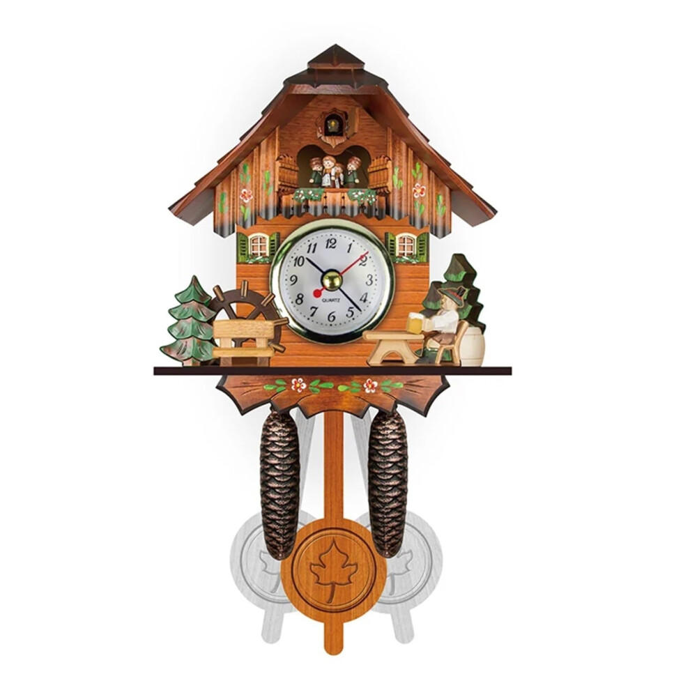 Cuckoo Clock Vintage Bird with Pendulum, Forest House Wall Clock for Home Decor, Cafe, and Restaurant, Wooden Design