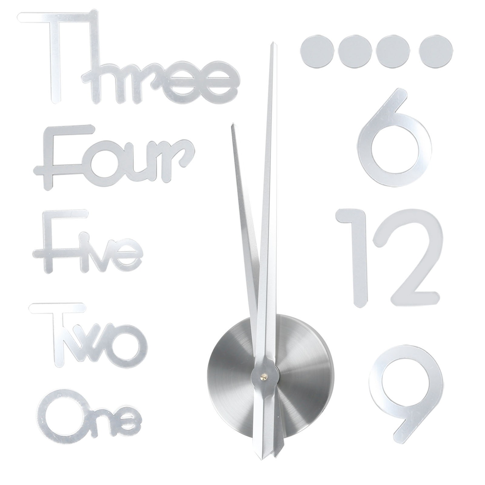 Large Silver Frameless Adhesive Wall Clock DIY Mirror Sticker For H OU