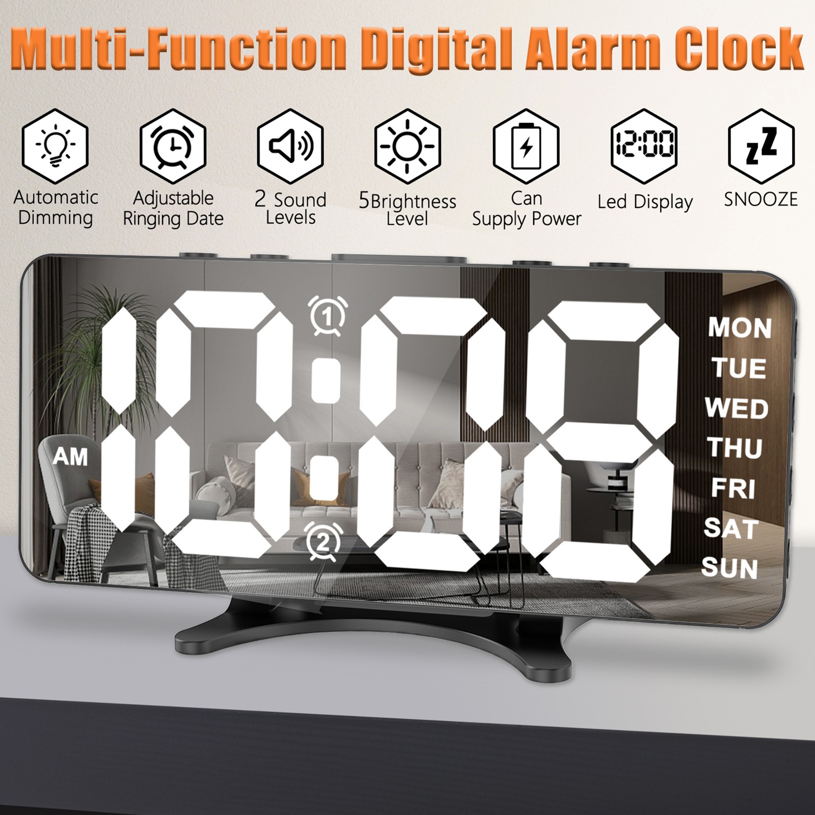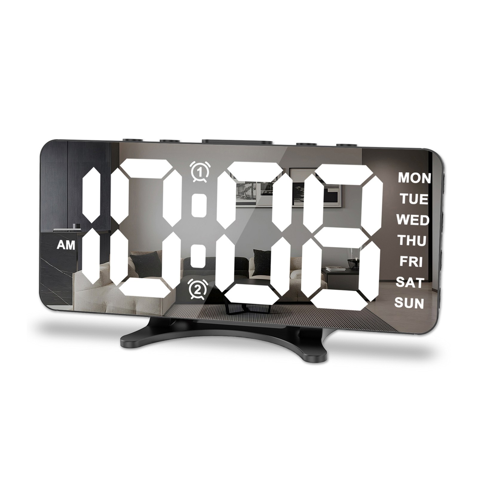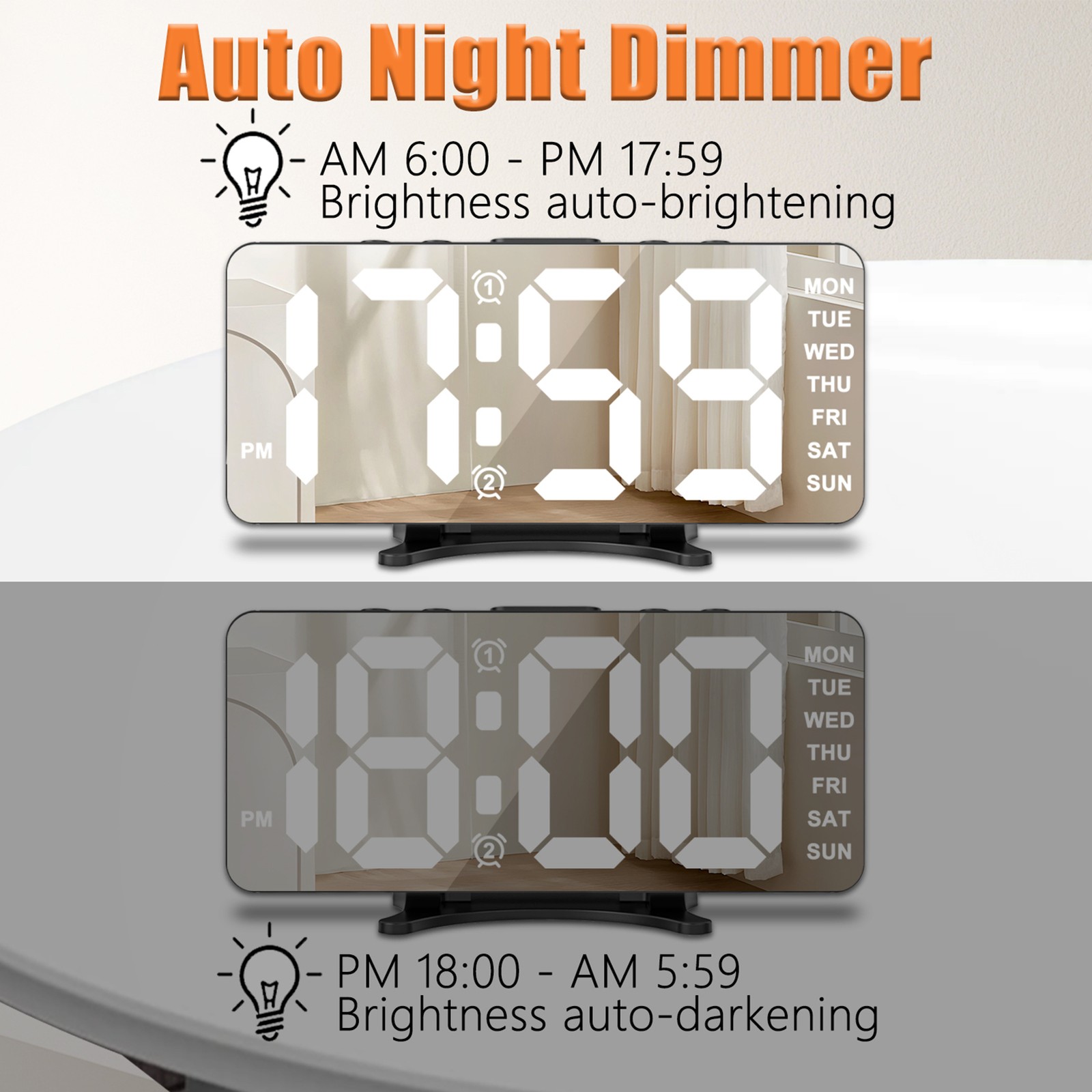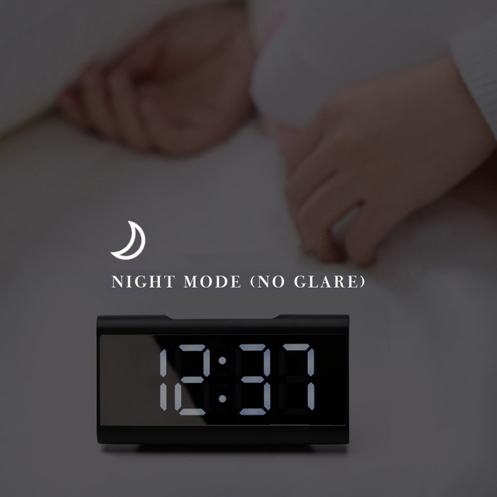 LED Digital Alarm Clock For Bedroom Mirror Desk Clock With 2 Alarms Snooze Funct