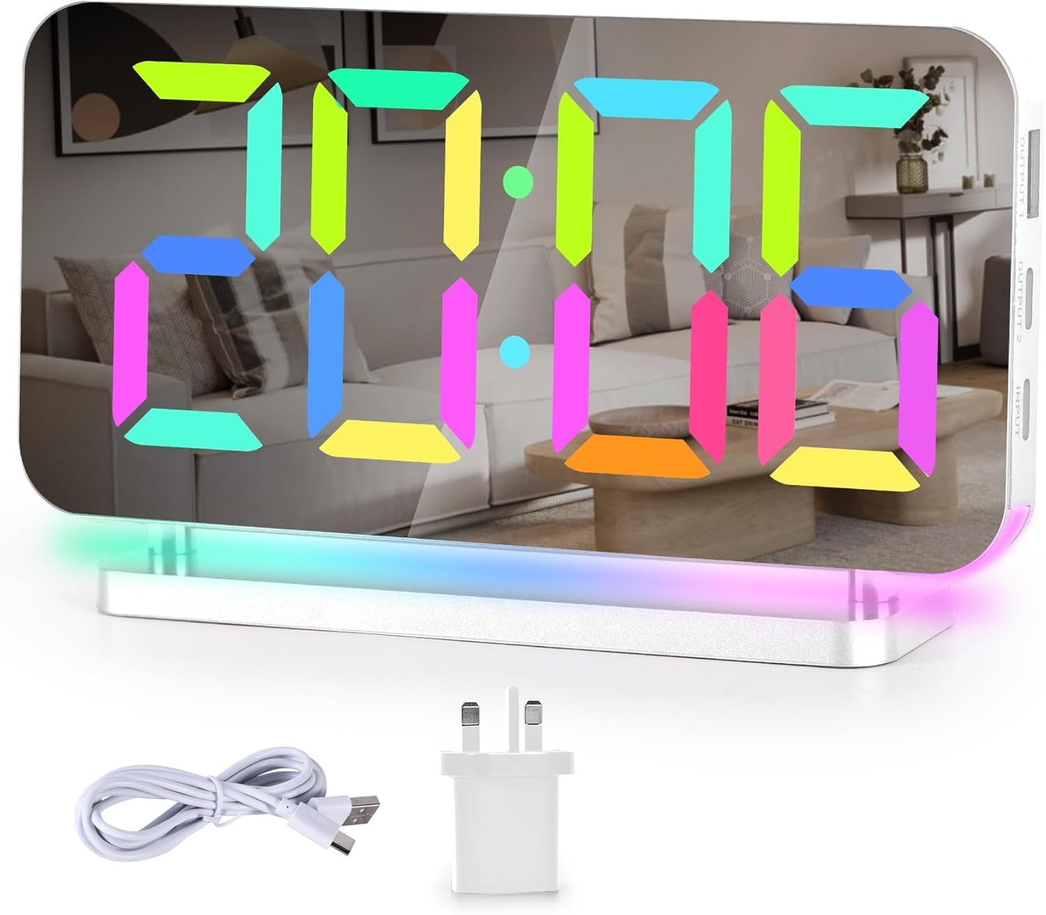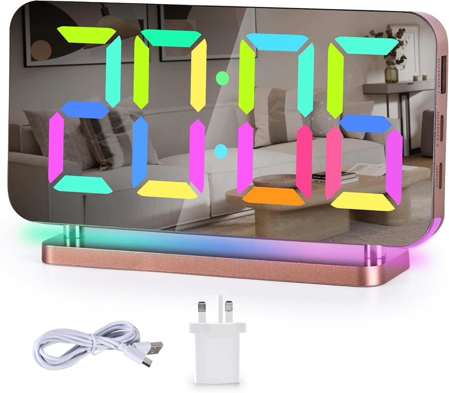 Sukeen Alarm Clock for Bedroom,7.4" Mirror Digital Clocks Large Display,with RG