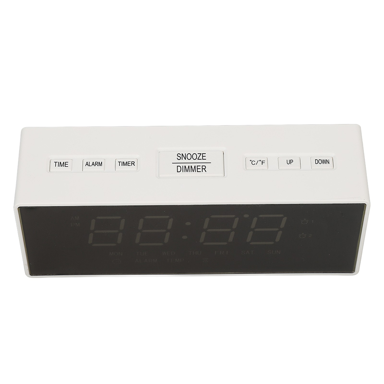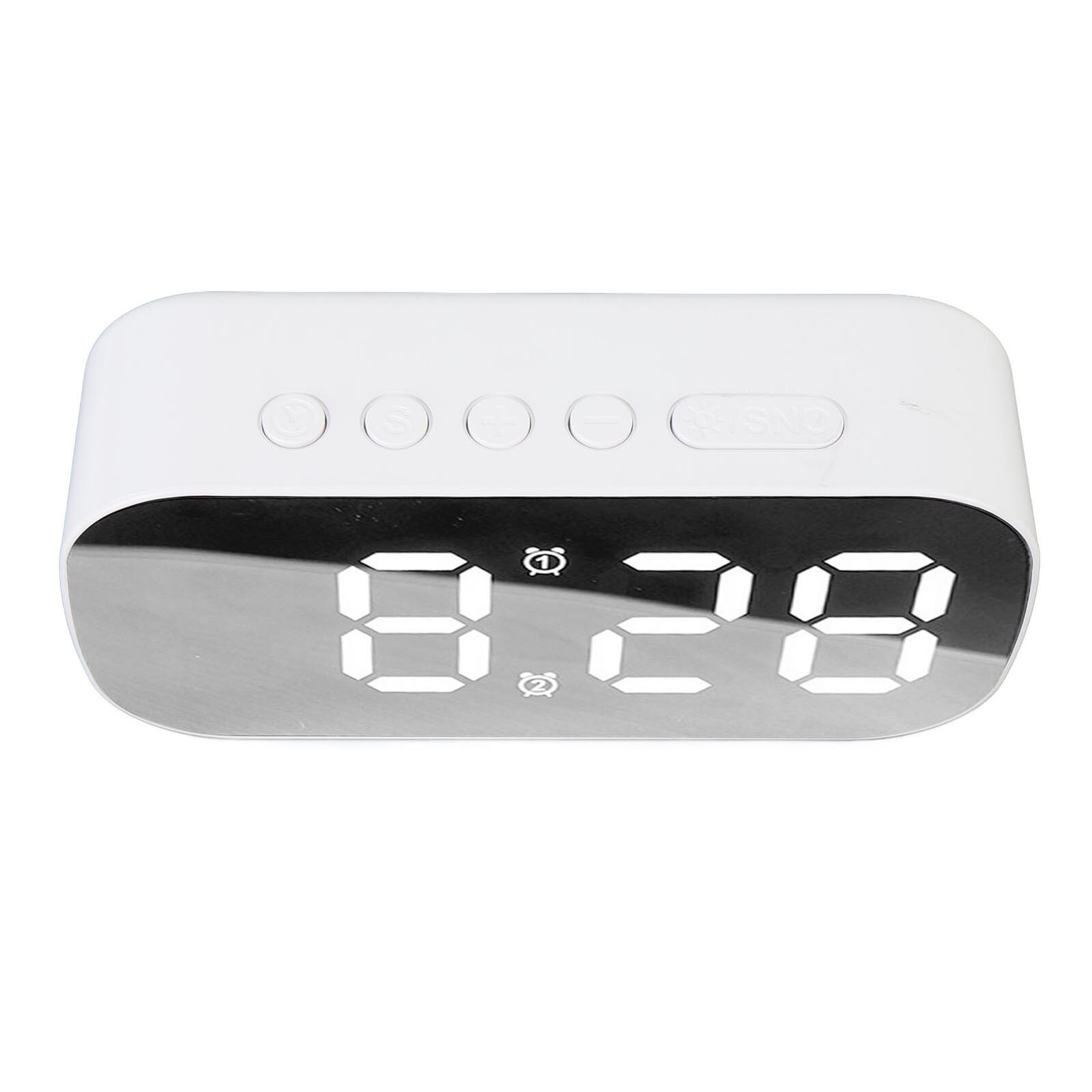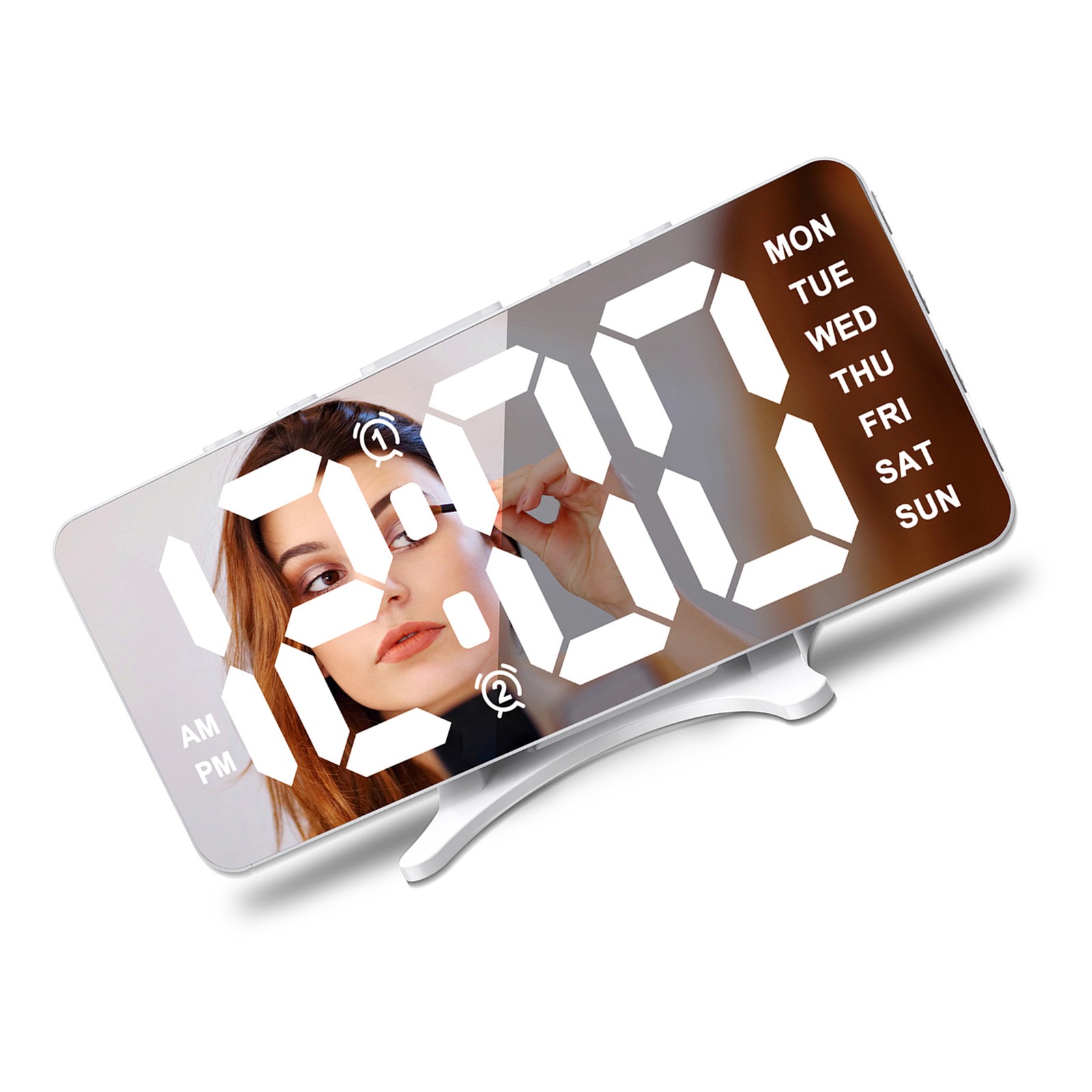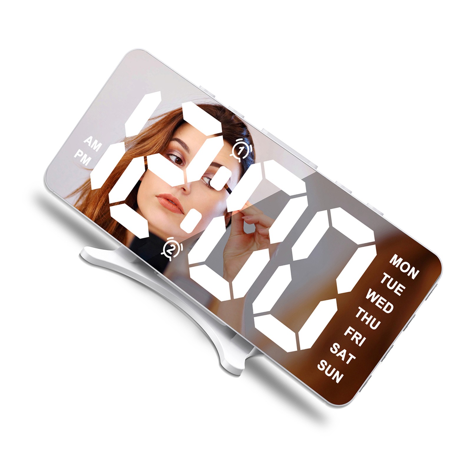 (White Shell)Led Digital Alarm Clock For Bedroom Mirror Desk Clock With