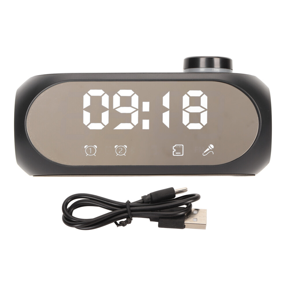 SHINROAD Alarm Clock Wireless Speaker Mini Mirror Surface Design ABS Support TF Card 2-in-1 Practical Bluetooth-Compatible Loudspeaker for Home Black