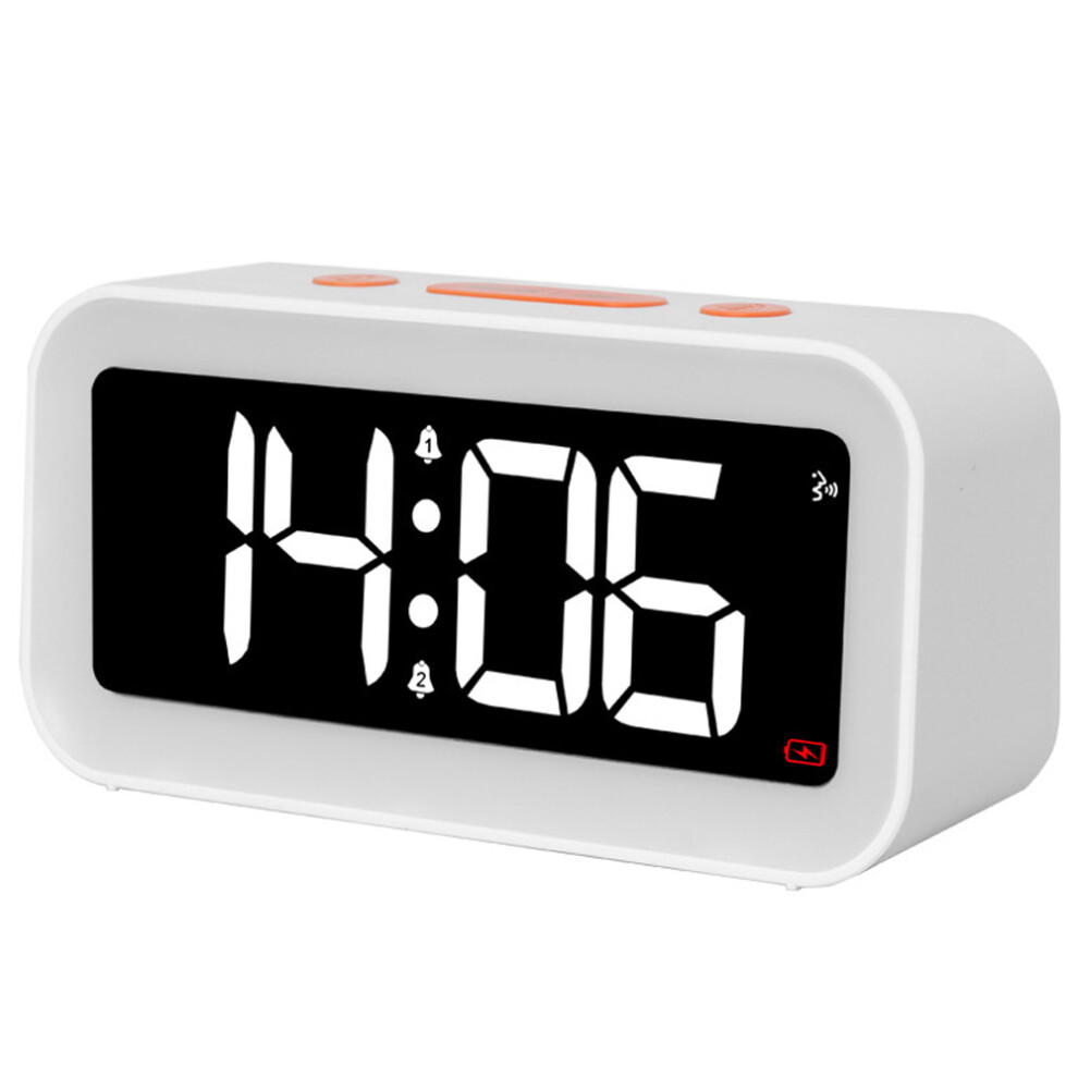 (White Shell)LED Digital Alarm Clock For Bedroom Mirror Desk Clock With 2 EC