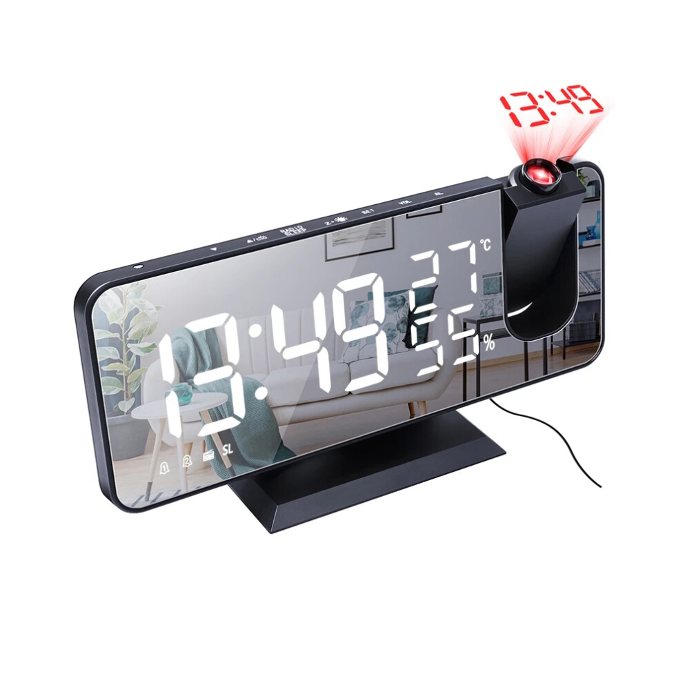 Rotatable Projector Alarm Clock For Bedrooms, Mirror Screen Display With Adjustable Brightness, Dual Alarms And Snooze Button, Radio Function, Tempera