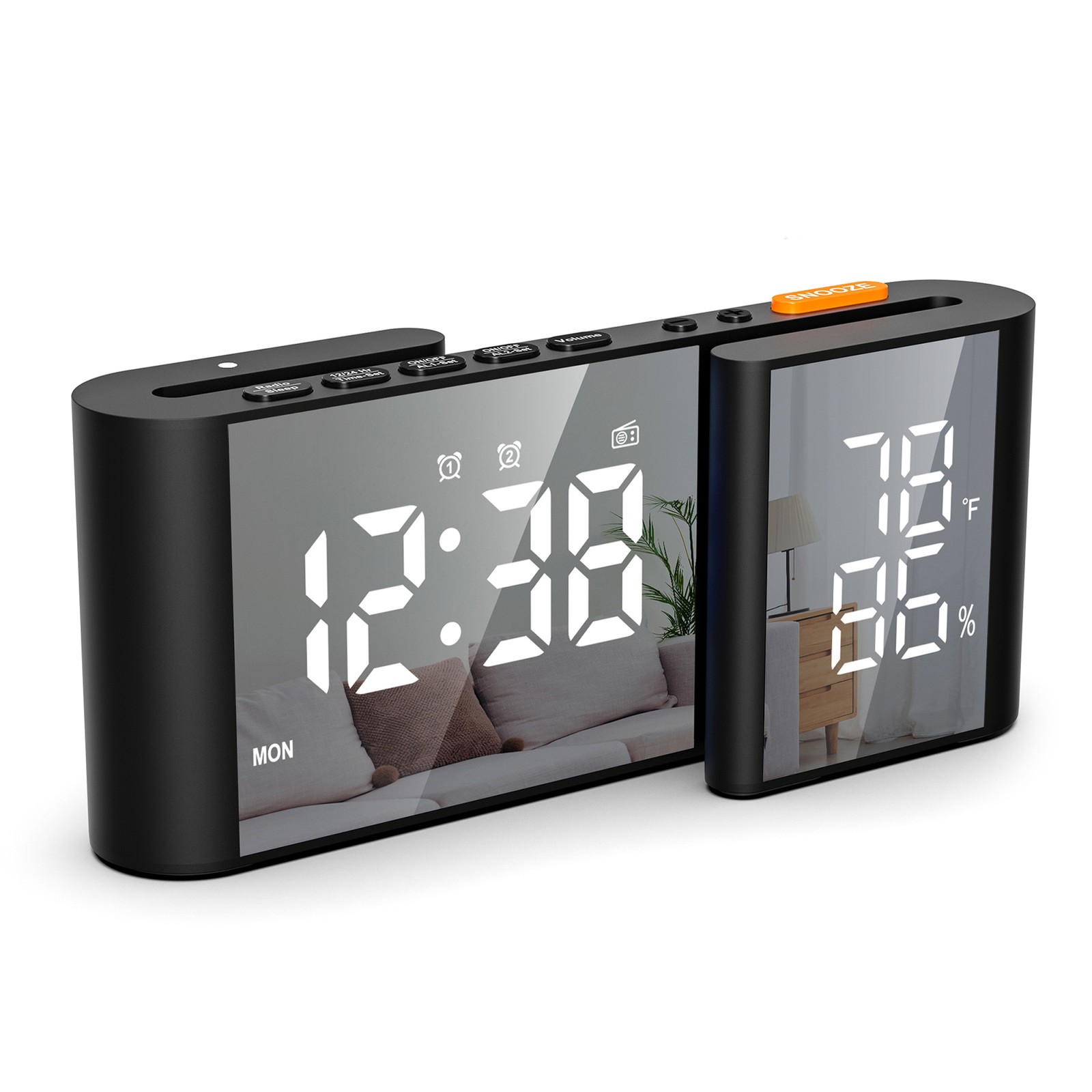 Fuhjythy Led Digital Projection Clock Mirror 180°Rotation Large Screen Date Time Temperature Electronic Alarm Clock for Bedroom Easy Install -A