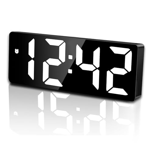 Fuhjythy Digital Alarm Clock, Adjustable Brightness Mirror Electronic LED Clock,12/24Hr Alarm Clocks for Bedrooms (Black)