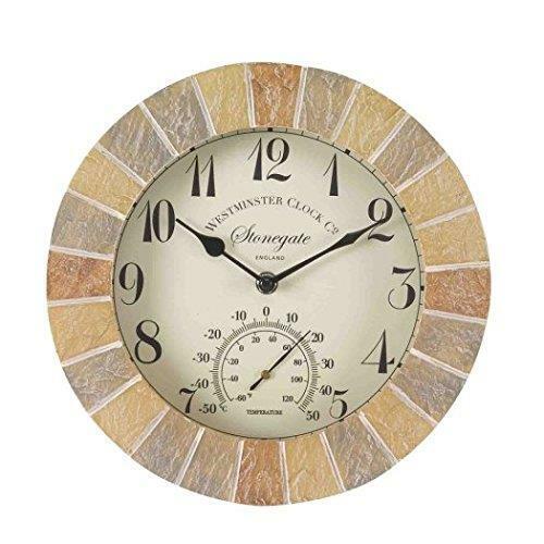 Stonegate Sandstone 10in Wall Clock and Thermometer Outside-In By Smart Garden