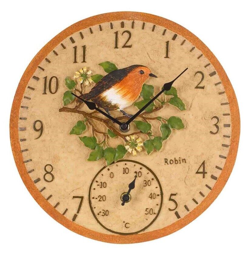 Robin 12" Garden Clock Outdoor Outside Indoor Wall Bird Kitchen Gift 30cm
