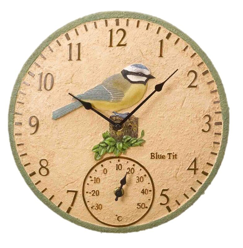 Blue Tit 12" Garden Clock Outdoor Outside Indoor Wall Bird Kitchen Gift 30cm