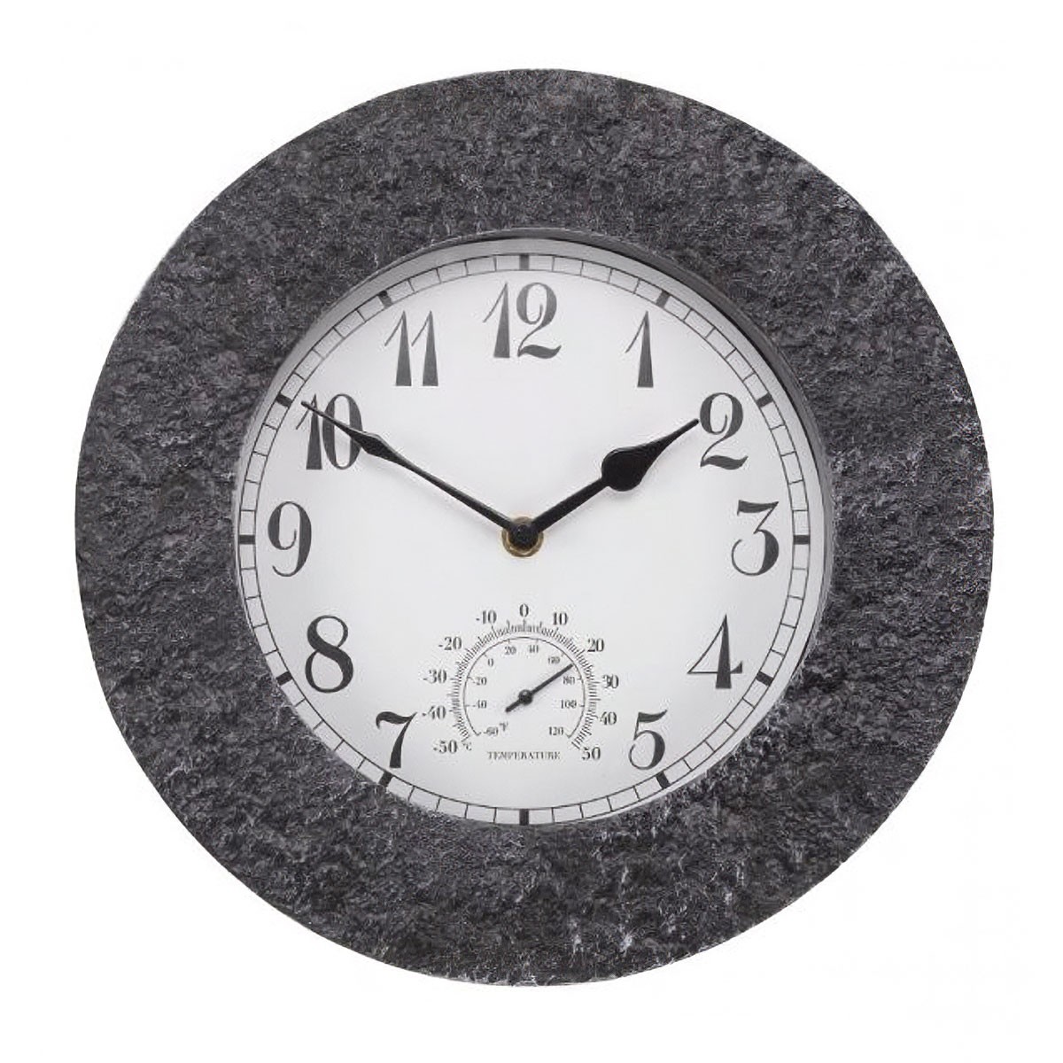 Outside In Granite Wall Clock & Thermometer - 12"