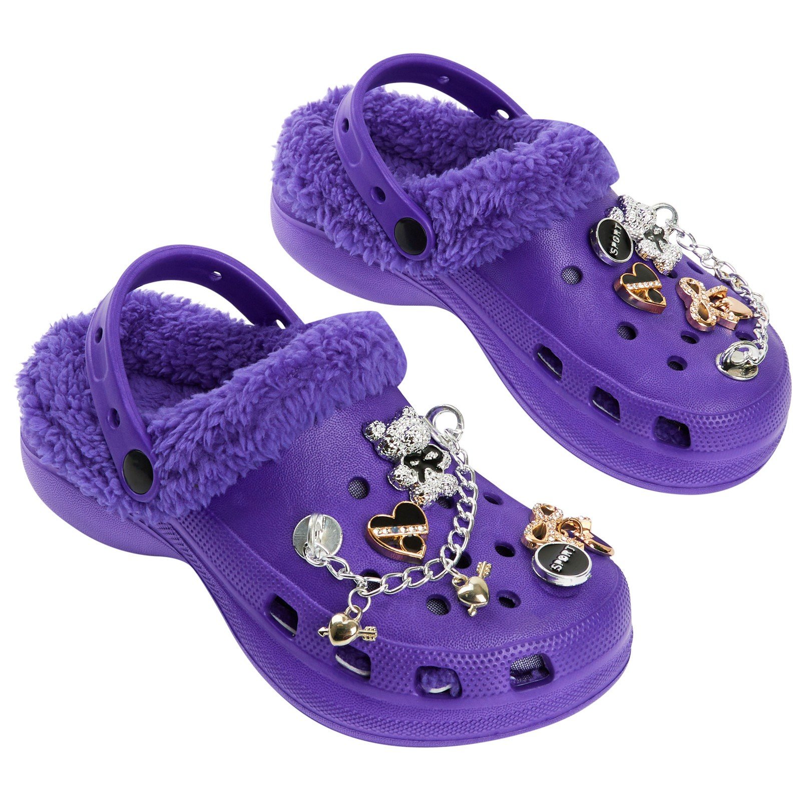 CityComfort Girls Clog Shoes With Removable Charms Warm Comfortable Durable