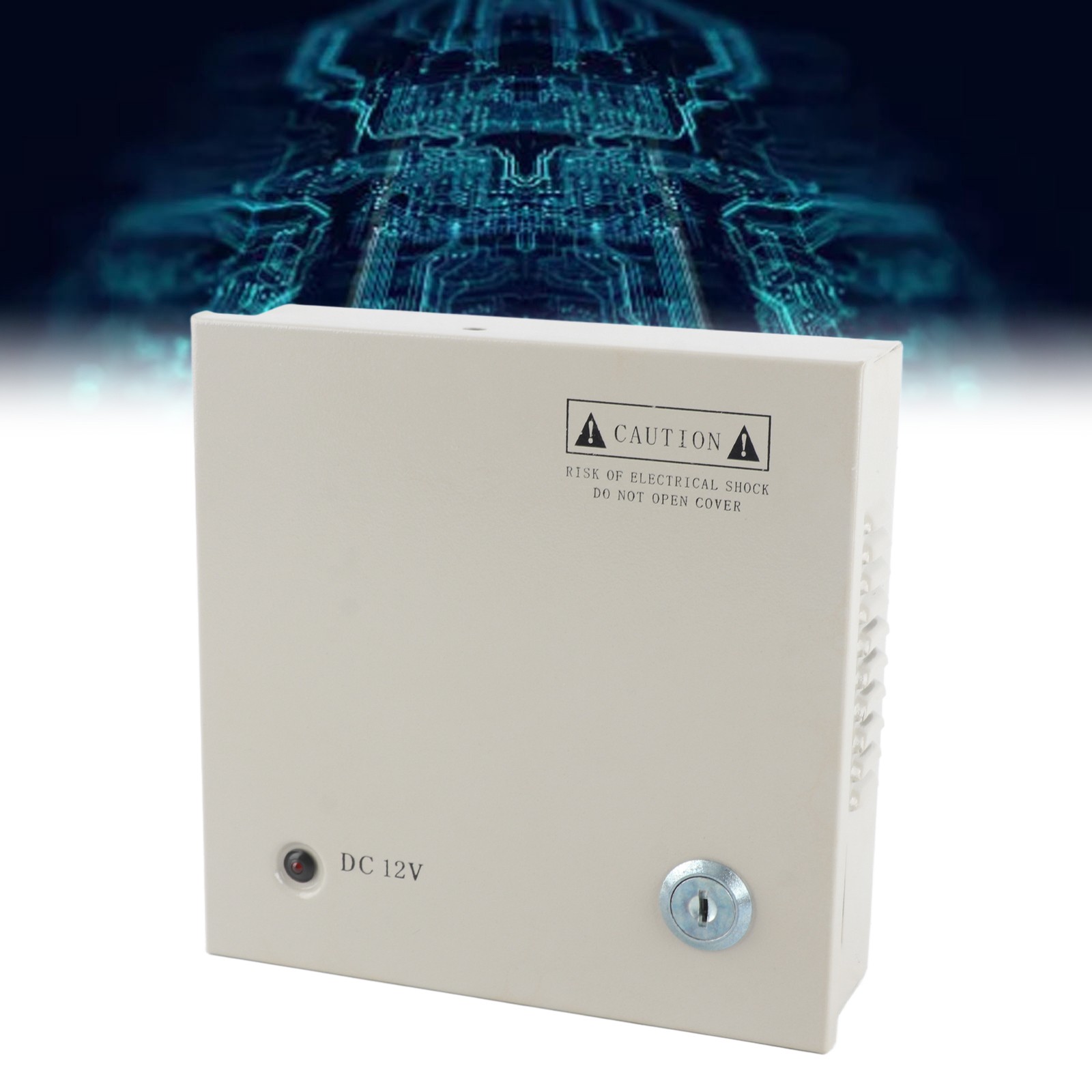 (As show, One size) 4 Channel 12V CCTV Power Supply 3A Fuse Closed Circuit TV Power Supply with Metal Box Lock 110V 220V