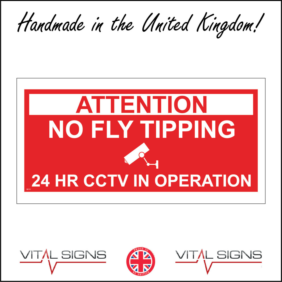 (200 x 100mm - 8 x 4, D - 1mm Pvc Foamex) SE111 No Fly Tipping 24HR CCTV Hour Closed Circuit Sign Camera Watching Looking 600mm x 300mm B - Magnetic -