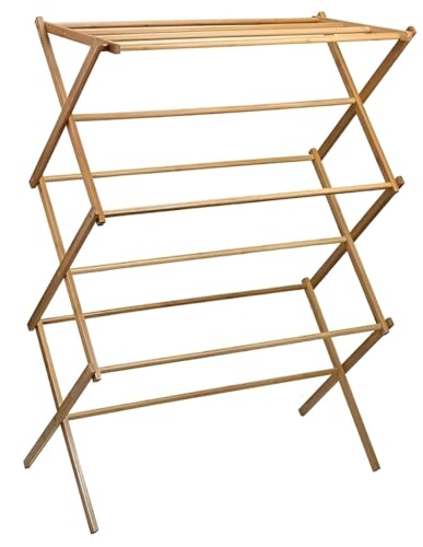 Optimal Products Bamboo Wood Cloth Drying Concertina Classic 3 Tier Airier Folding Airer Foldable (Natural)