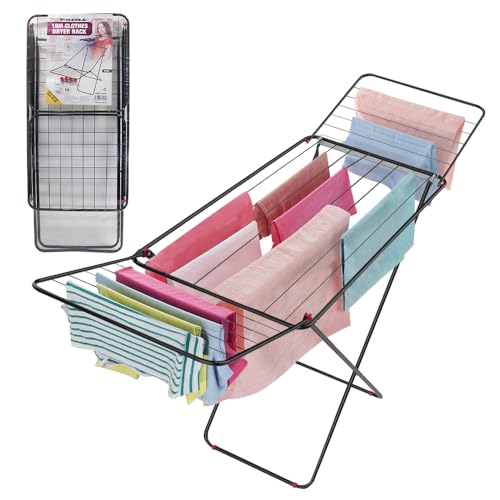18M Cloth Dryer Rack - Stand Towel Rail Airer Concertina Laundry Washing Winged | Dryer Rail for Indoor and Outdoor Use | Foldable Drying Rack | 22 Bar Clothe Airer - Drying Rack For Laundry Black