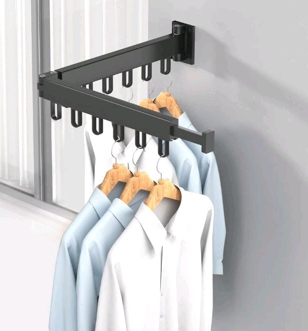 (As show, One size) Folding Clothes Hanger Wall Mount Retractable Cloth Drying Rack Aluminum Laundry Clotheine Space