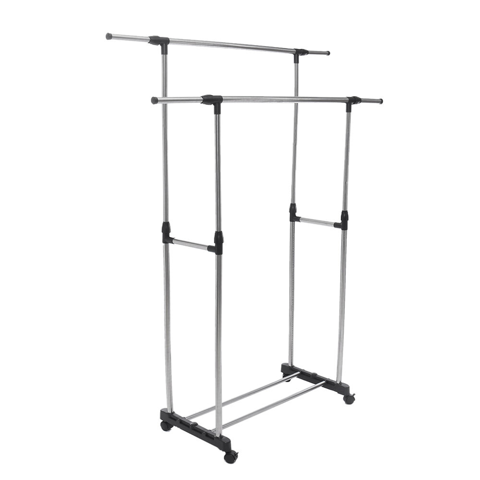 Adjustable Stainless Steel Rolling Rail Movement Cloth Storage Drying Rack Double Bar Hanger Garment