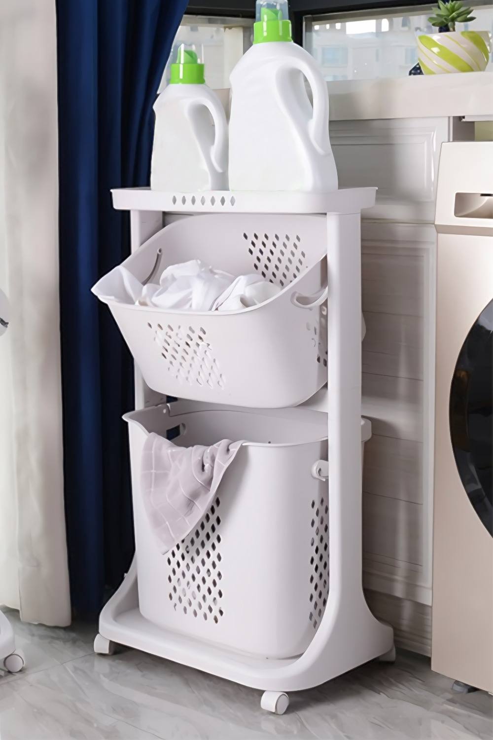 3/4 Tier Laundry Basket - Multi-Layer Laundry Basket | Rolling Laundry Cart With Wheels | 360° Rolling Laundry Basket for Bathroom | Laundry Baskets for Clothes, Trolley