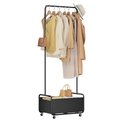 Dunatou Clothing Rack with Basket, Standard Rod Clothing Garment Rack, Rolling Clothes Organizer on Wheels for Hanging Clothes (Small, Black)