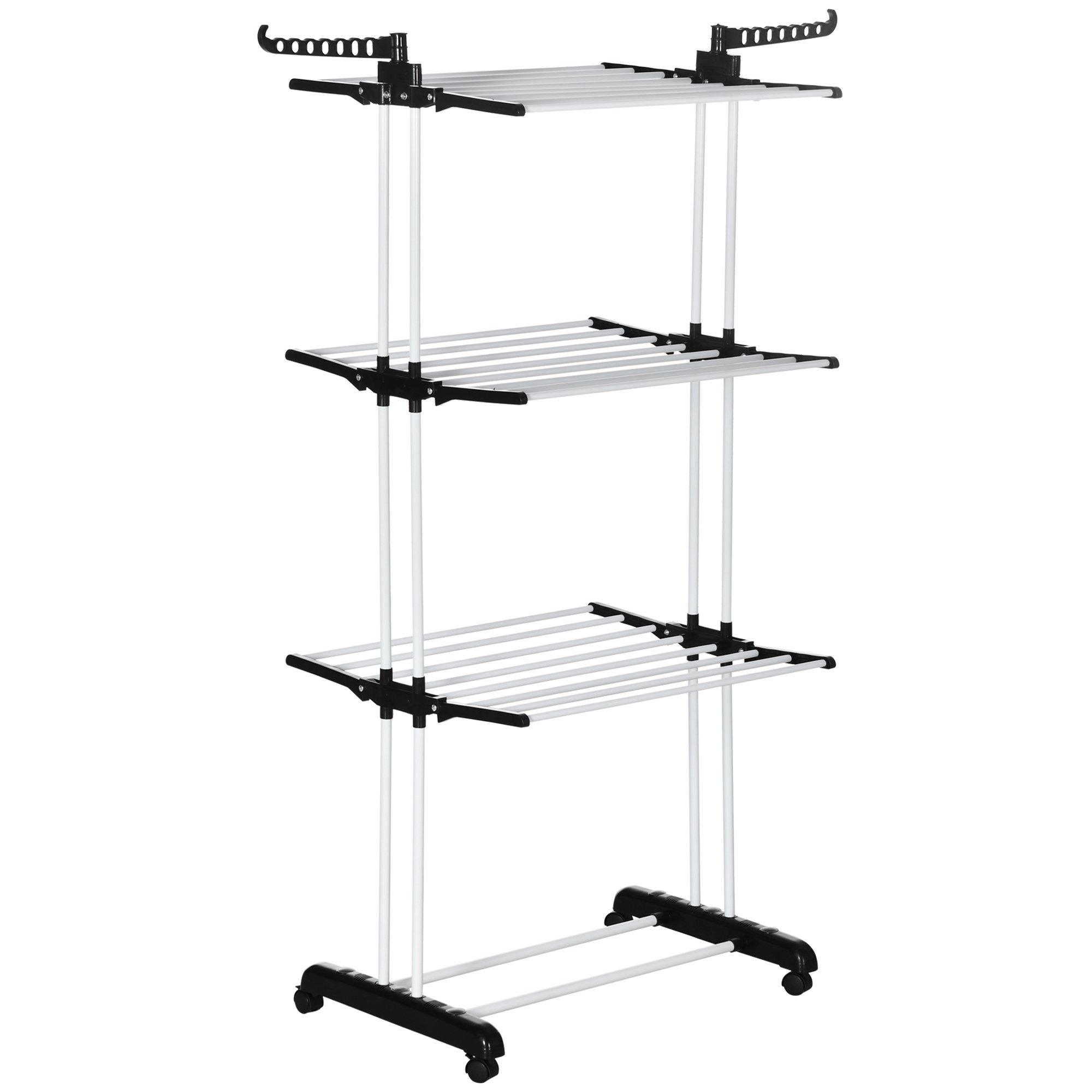 3 Tier Foldable Clothes Airer; Indoor Outdoor Clothes Rack on Wheels