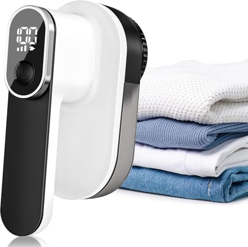 Lint Remover, Bobble Remover Rechargeable for Clothes, LED Display, 3 Speeds Adjustable Fabric Shaver for Clothes, Sweater Shavers for Various Fabrics, White
