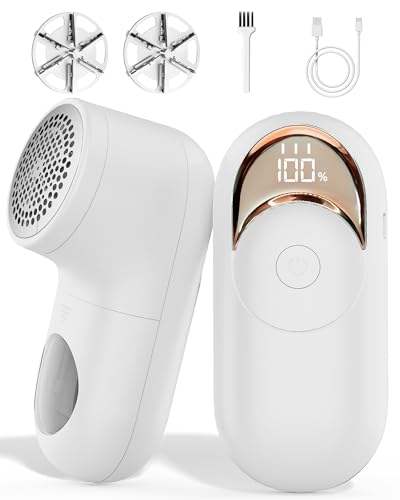 MEDE Rechargeable Fabric Shaver for Clothes,No Damage Lint Shaver 2000mAh Battery Electric Lint Remover with LED Display&3 Speeds,Effective Bobble Remover Debobbler Clothes Shaver (3 Blades Included)