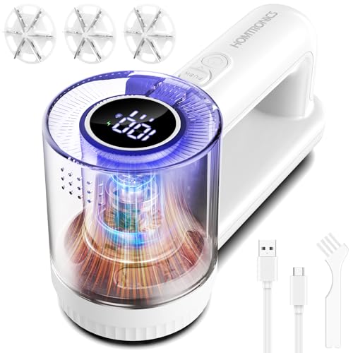 Homtronics Electric Lint Remover, 2000mAh Rechargeable Bobble Shaver for Clothes and Furniture, Adjustable 3-Speed, 6-Leaf Blade, LED Display, Quick and Effective Removal of Pills and Bobbles (White)
