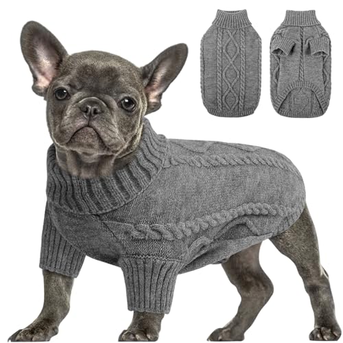 Queenmore Dog Jumper- Knitted Turtleneck Sweater for Dachshund, Clothes Outfit for Chihuahua, Sausage Dog, Bulldog & Yorkie, Dark Grey, XS