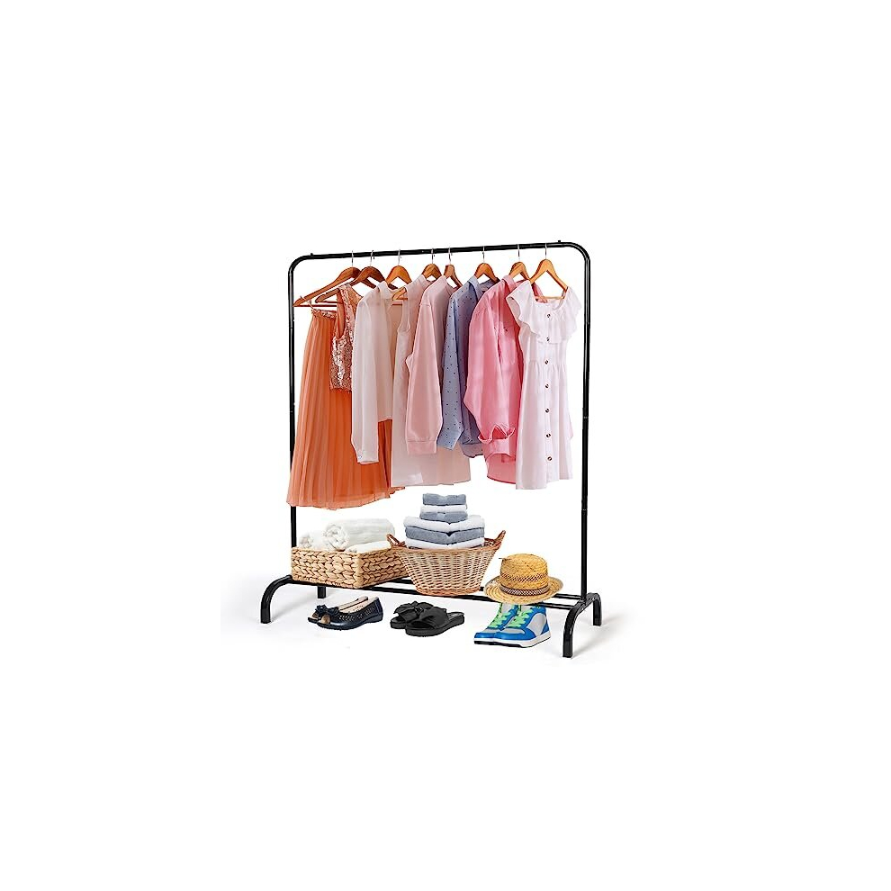 Metal Clothing Rack Garment Rack, Closet Rack Heavy Duty Hanging Racks for Clothes with Top Rod and Storage Bottom Shelf, Clothes Rail Hanger Stand Free for Hanging Coats, Skirts, Shirts 43.5 In-Black
