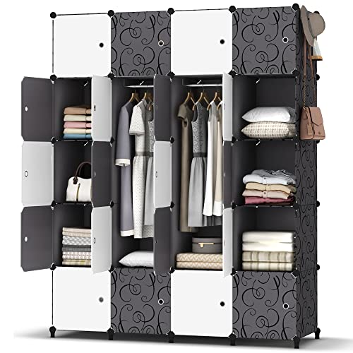 HOMIDEC Upgraded Portable Wardrobe 12 Cube Closet with 2 Clothes Hanging Rails, Deeper Cube Clothes Storage Organizer Shelf for Bedroom