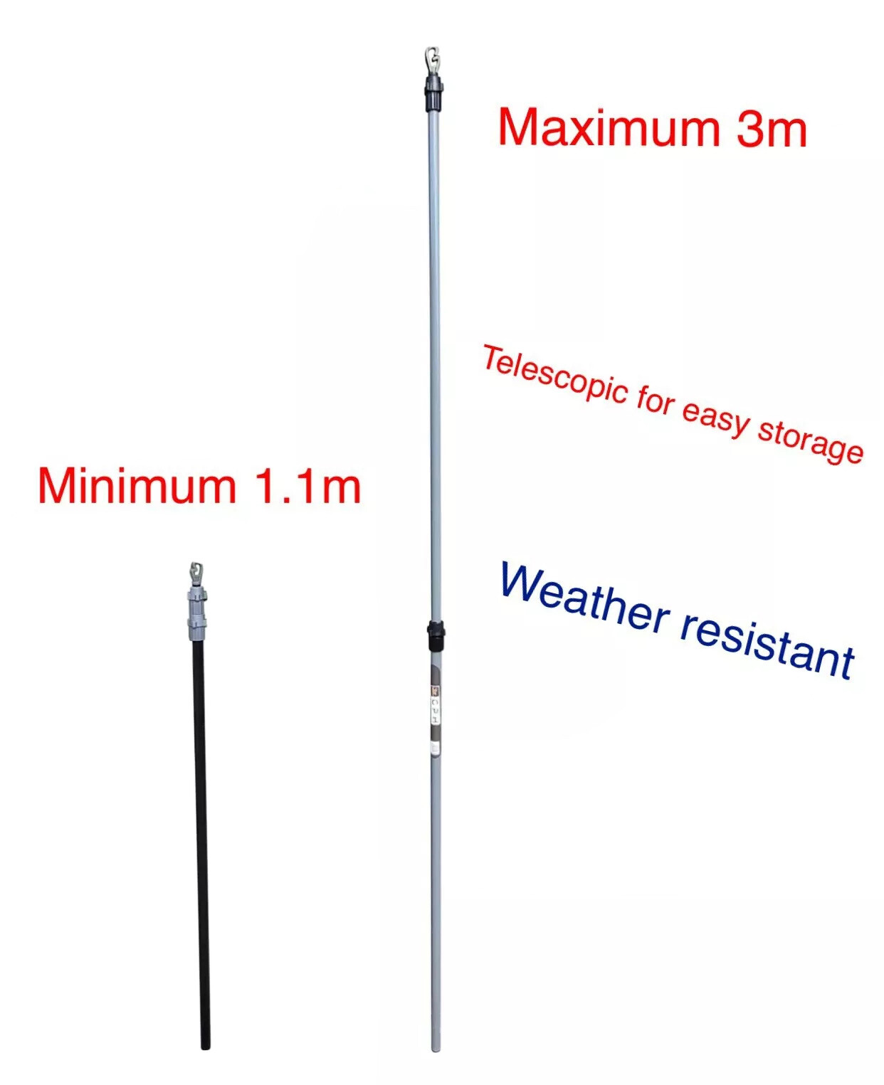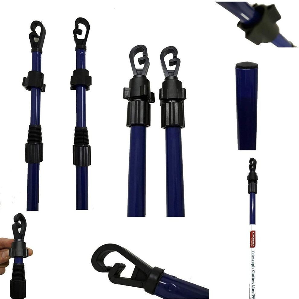 2X CLOTHES WASHING LINE PROP POLE H/D TELESCOPIC SUPPORT EXTENDABLE 1.1 M to 3 M