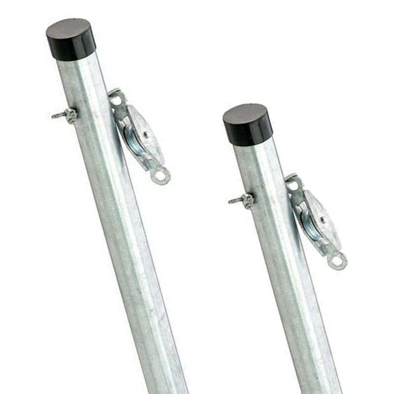 Washing Line Clothes Pole Post 2.4m 8ft One Piece Galvanised Cleat and Pulley x2