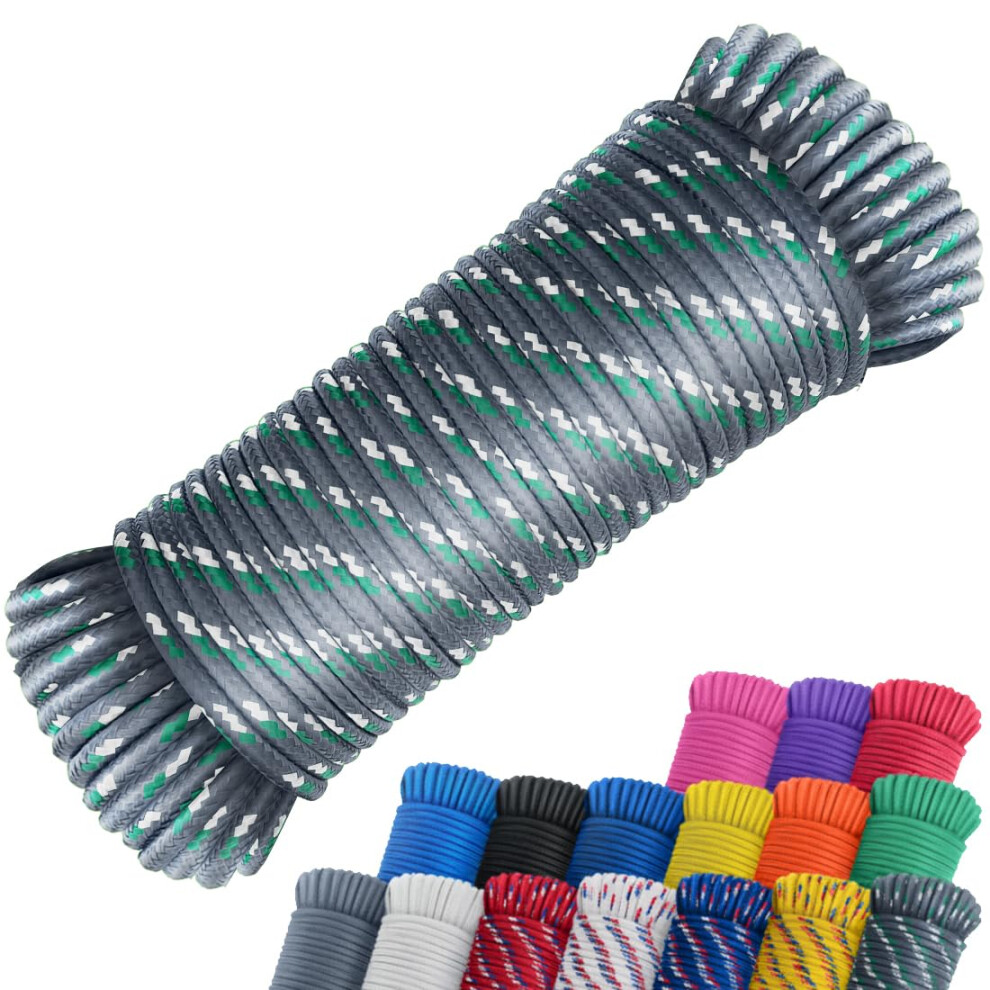 SMART&CASUAL 100 ft 1/4"""" Nylon Poly Rope Strong Utility Polyester Cord for Clothes Line Flag Pole Camping Crafting (Gray (Green&White))