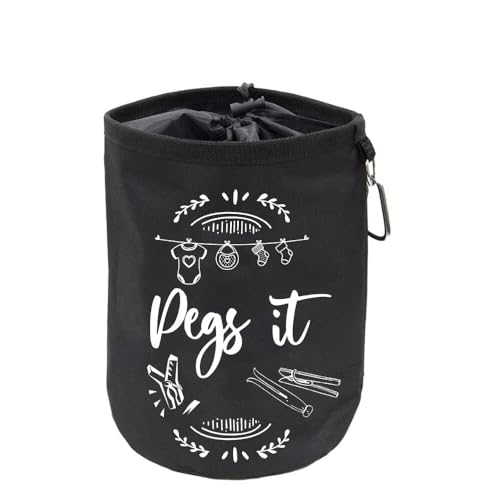 Peg Bag for Washing Line Waterproof and Weatherproof for Securing up to 300 Clothes Pegs for Washing line – Hanging Clothesline Peg Bags - Black (Modern)