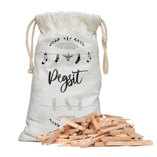 Peg Bag with 100 Pcs Wooden Pegs for Washing Line – Laundry Pegs for Small Laundry Items - Wooden Clothes Pegs for Craft, DIY Projects & Photos