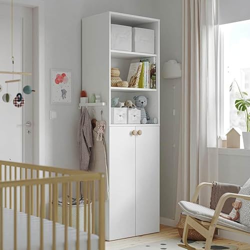 ZRIZAURA LASTARE Wardrobe Closet Storage Unit 60x42x200 cm White Tall Bedroom Cabinet with Doors Clothes Rail Shelves Basket Organiser Cupboard