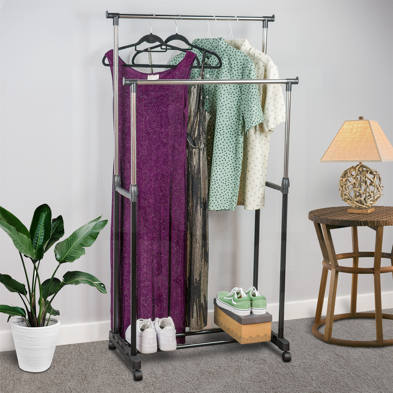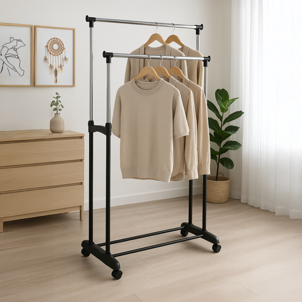 Double Clothes Rail Garment Rack on Wheels