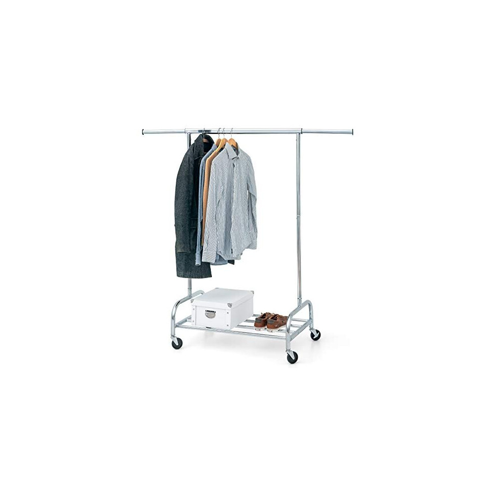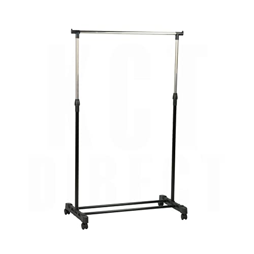 KCT - Adjustable Clothes Rack on Wheels - Single Rail Freestanding Clothing Storage Costume