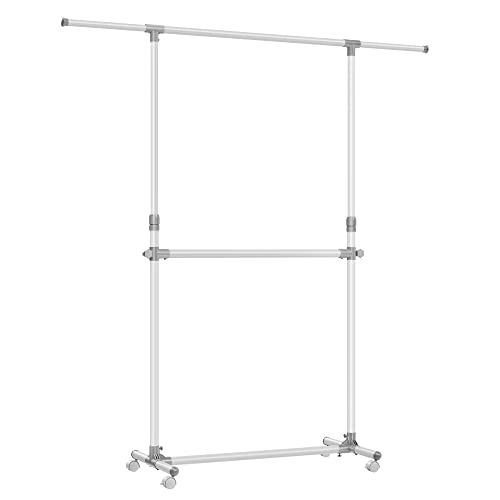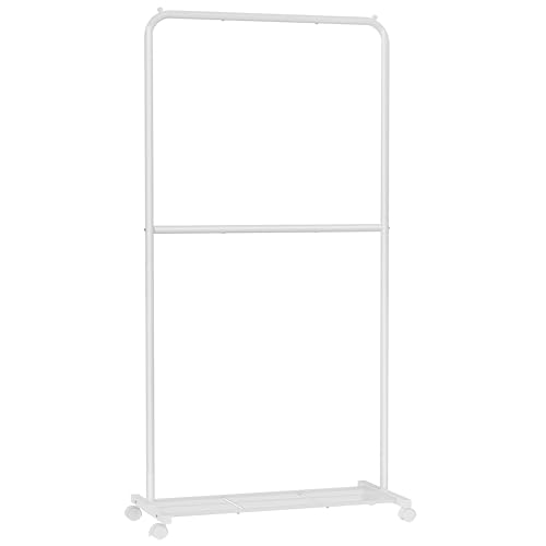 YOUDENOVA Clothes Rail on Wheels Clothes Rack Double Hanging Rails for Clothes Rails for Bedroom Heavy Duty Metal Stand Storage Shelf White
