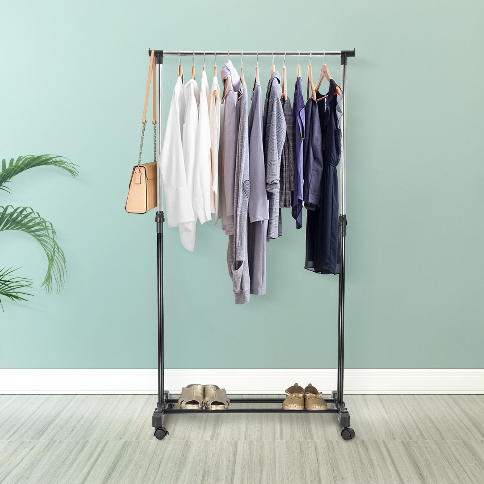 ADJUSTABLE MOBILE CLOTHES COAT GARMENT HANGING RAIL RACK STORAGE STAND ON WHEELS
