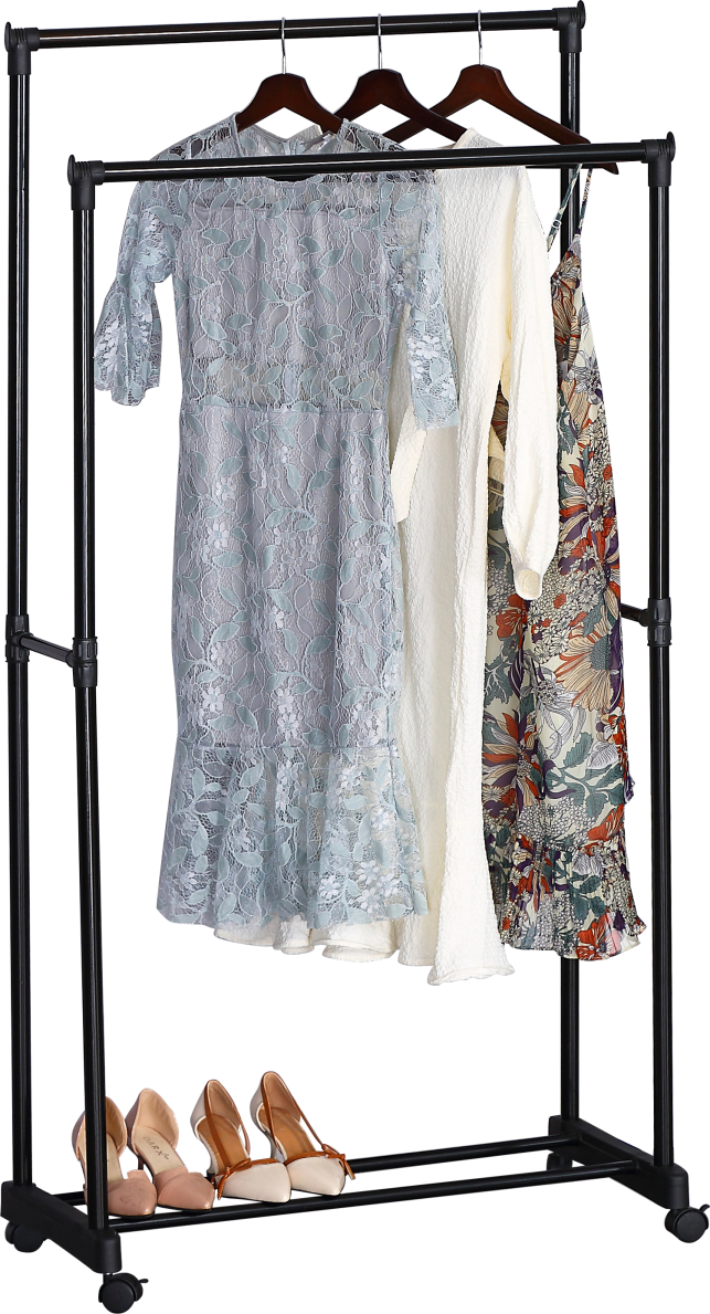 Clothes Rail On Wheels Double Hanging Garment Shoe Storage Shelves Display Stand