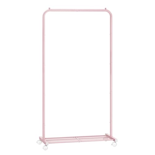 SONGMICS Clothes Rack, Clothes Rail on Wheels, Metal Clothing rail for Bedroom, 74 cm Long Hanging Rail, with Storage Shelf, 2 Lockable Wheels, 35 kg Load Capacity, Jelly Pink HSR130R01
