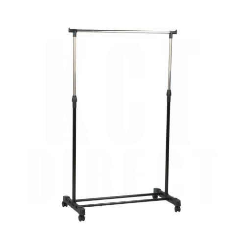 KCT (Single Clothes Rail) Rail on Wheels Portable Wardrobe Hanging Display Stand Rack Adjustable Garment Storage